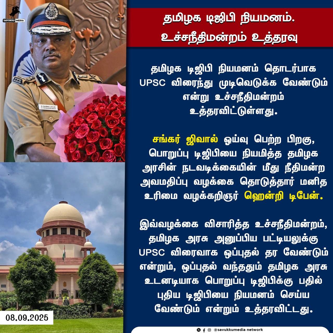 தமிழ்நாடு பொறுப்பு டிஜிபியாக வெங்கட்ராமன் நியமனத்திற்கு எதிராக உச்ச நீதிமன்றத்தில் ஹென்றி திபேன் அவமதிப்பு வழக்கு தொடர்ந்துள்ளார்.