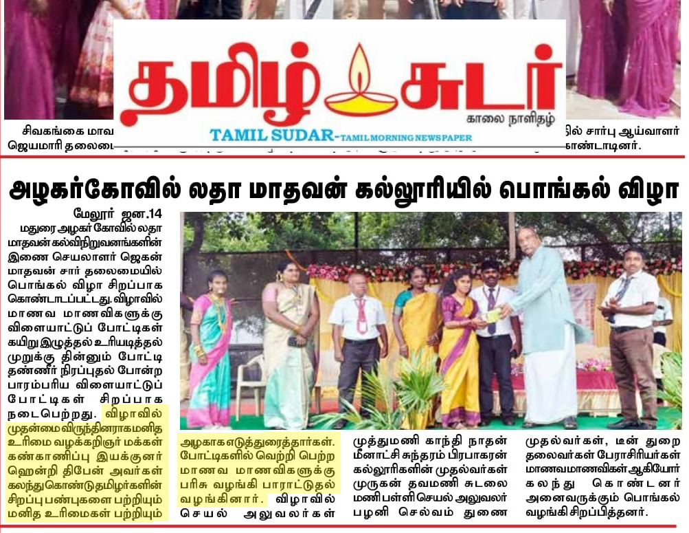 அழகர்கோவில் லதா மாதவன் கல்லூரியில் பொங்கல் விழா