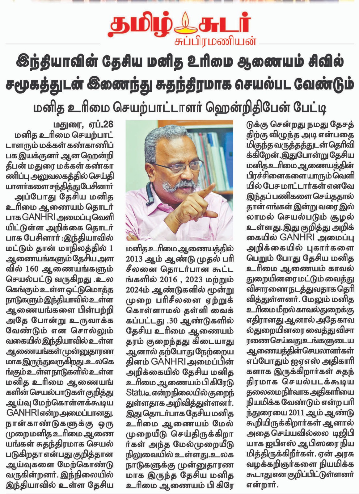 -மனித உரிமை மீறலில் இந்தியாவிற்கு வழிகாட்டியாகத் தமிழ்நாடு போலீஸ் திகழ்வதாக குற்றச்சாட்டு