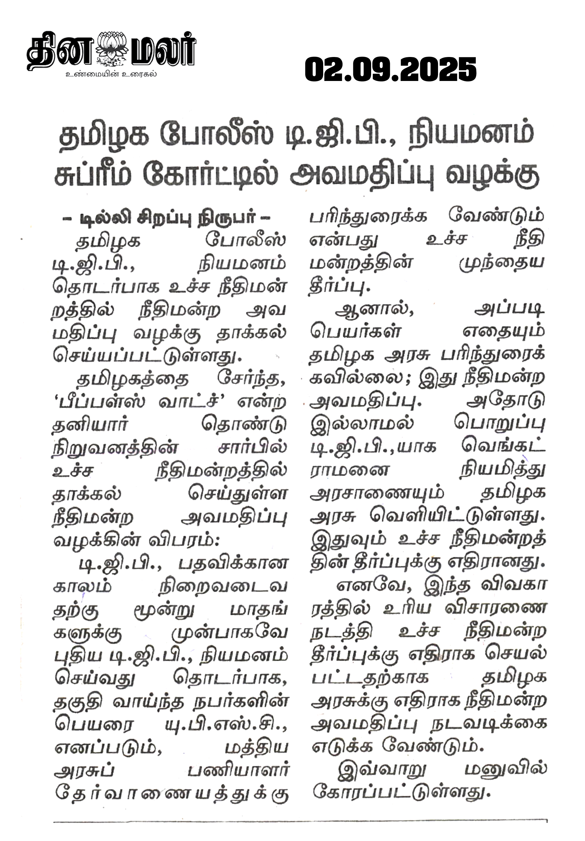 தமிழ்நாடு பொறுப்பு டிஜிபியாக வெங்கட்ராமன் நியமனத்திற்கு எதிராக உச்ச நீதிமன்றத்தில் ஹென்றி திபேன் அவமதிப்பு வழக்கு தொடர்ந்துள்ளார்.