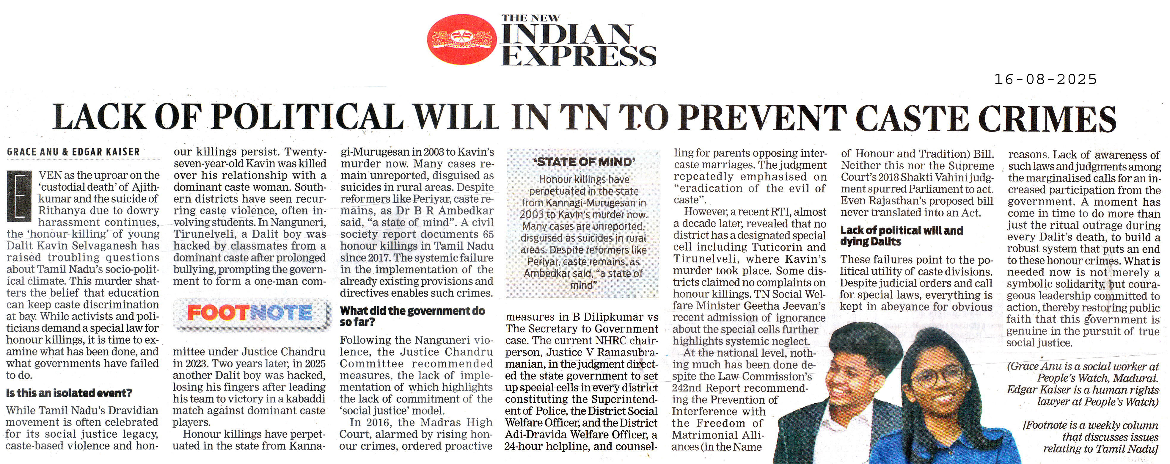 Lack of political will in TN to prevent caste crimes